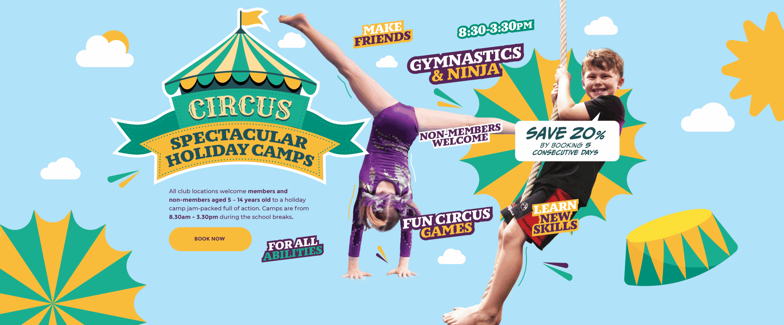 Our clubs cater for all abilities with both progression and fun in equal measure. We have a huge range of classes for all age ranges and abilities. So whether you have a budding gymnast, a little ninja or a dancer at heart, our classes are the perfect way to learn new skills, grow confidence and make new friends.